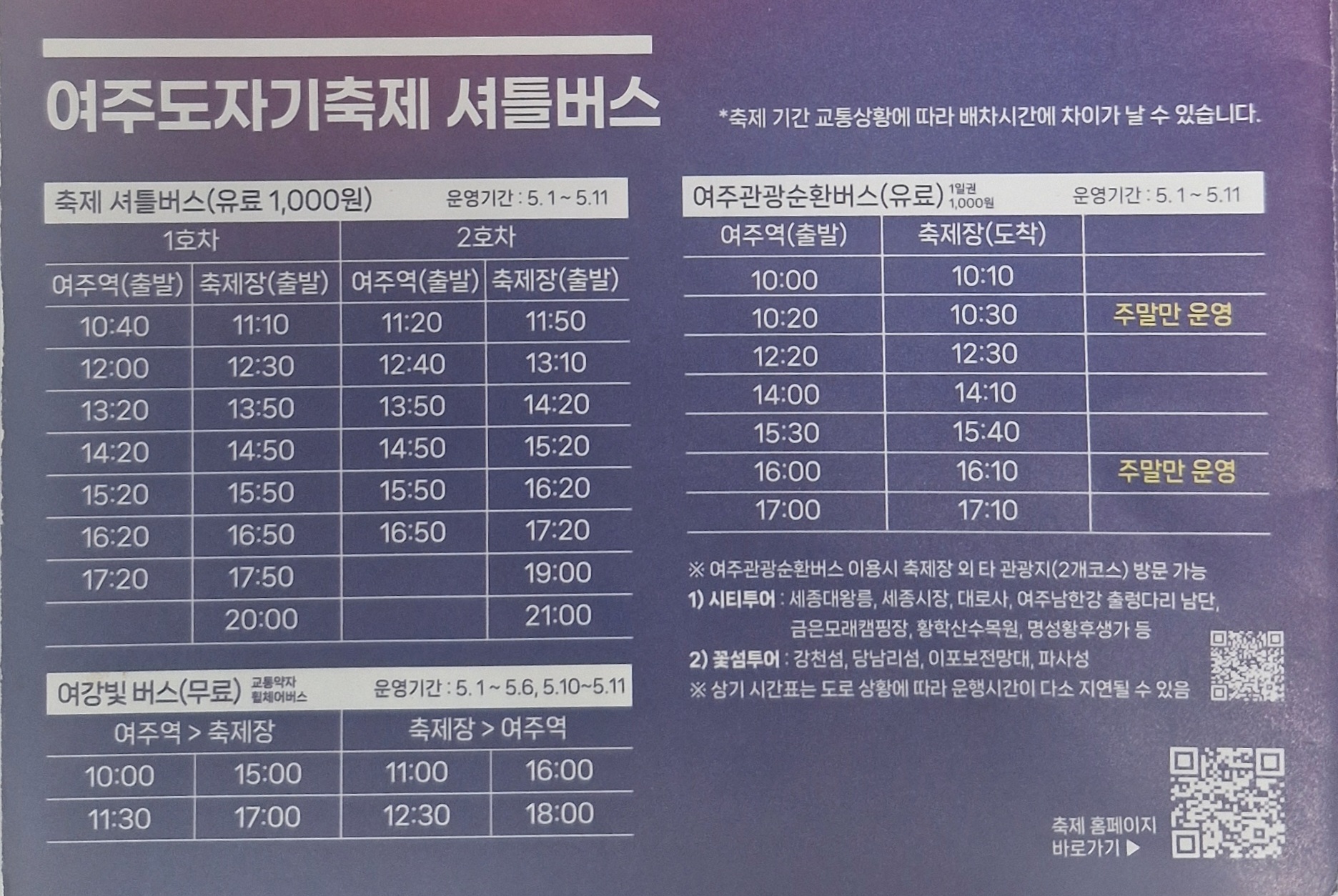 - 5월3일~6일/ 10일~11일 19:00 (출렁다리 콘서트도 예정 입니다)