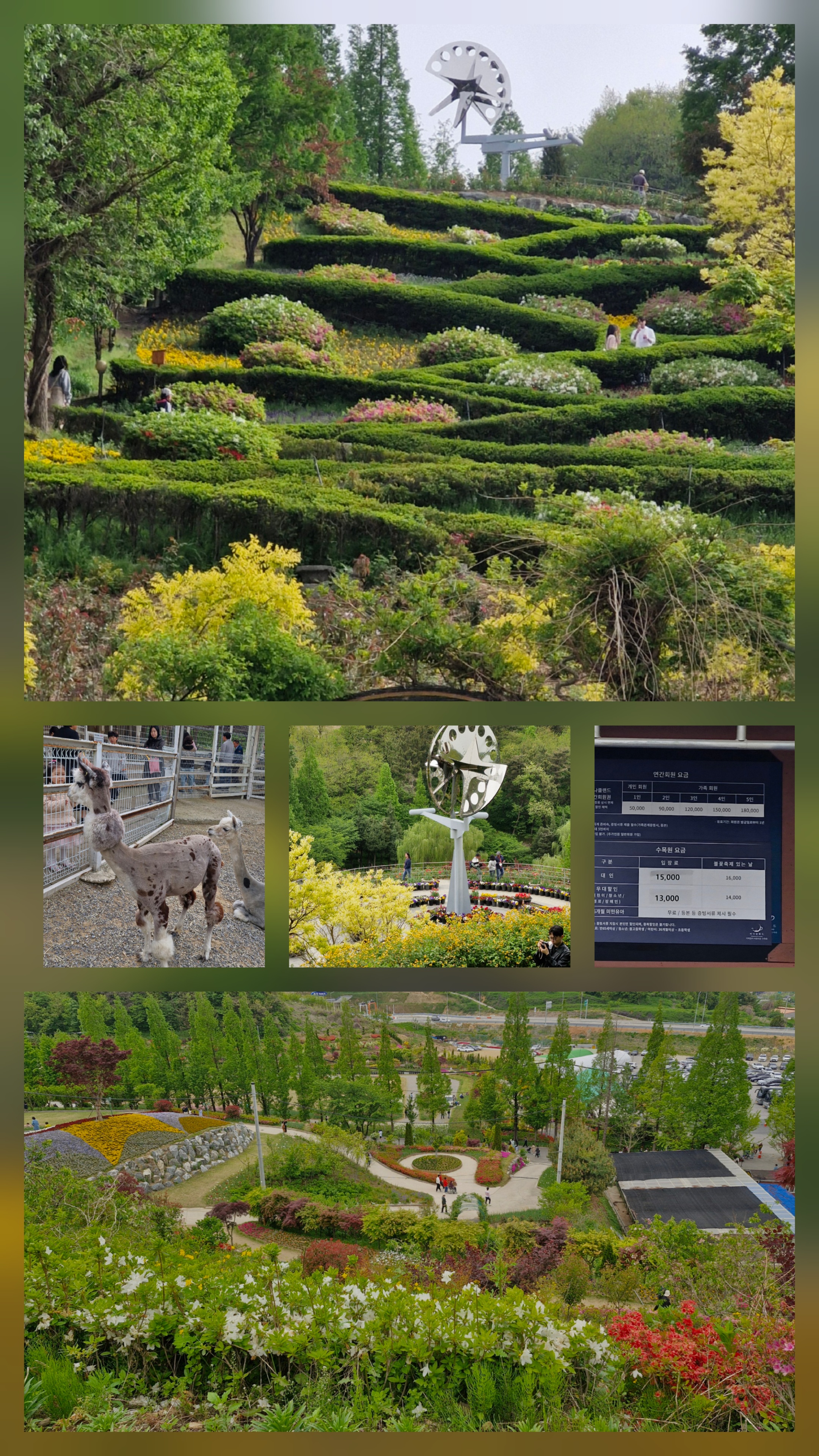 - 입장료: 성인기준 15,000원/우대할인 13,000(어린이/청소년/경로/장애인) (봄꽃축제있는날+1,000원)